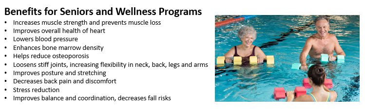 Water exercise provides natural resistance while taking away the burden of gravity – making it a safe, but efficient exercise program.